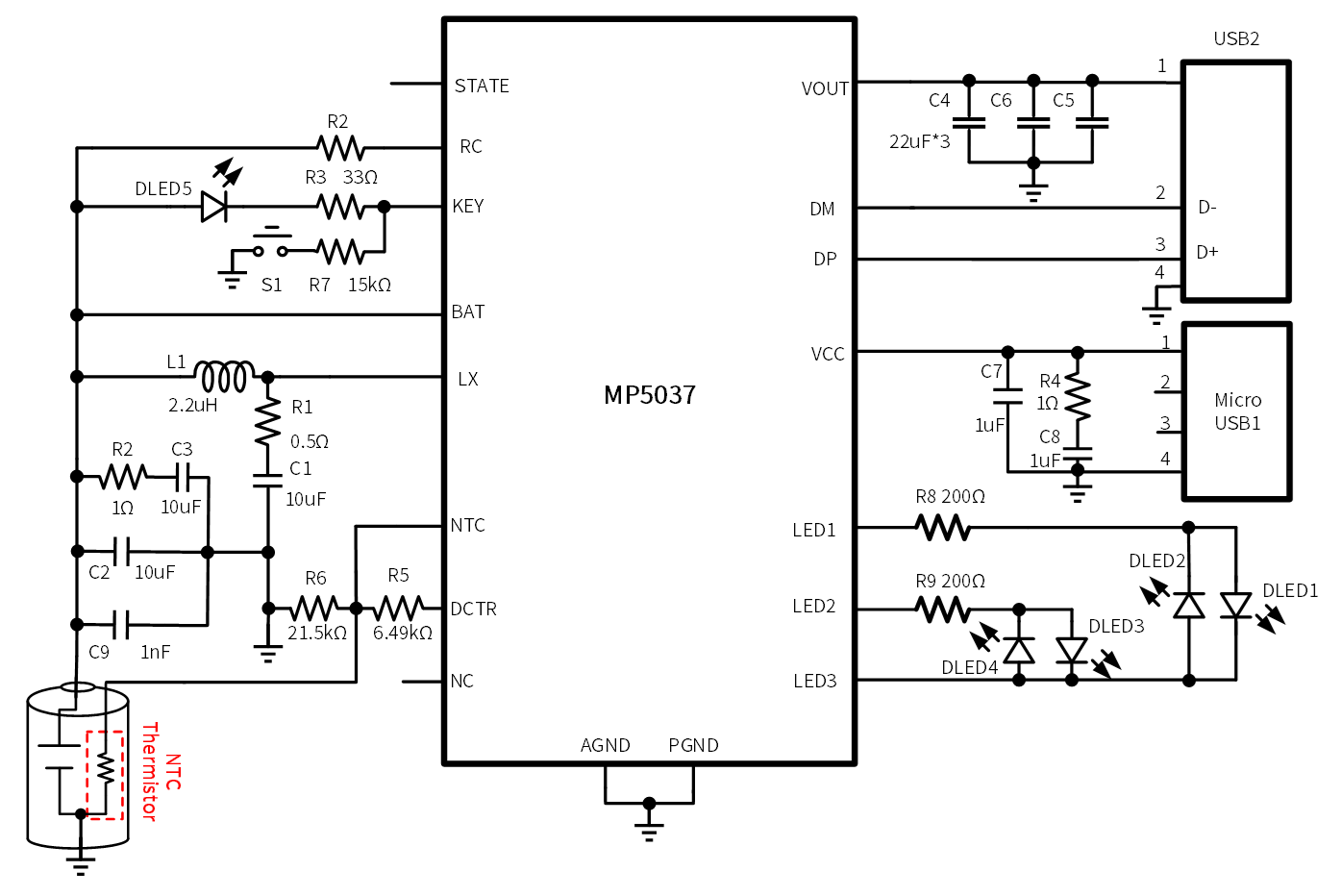 MP5037 is a power bank solution device which is highly integrated with switch charger, LED display cell and synchronous boost output.