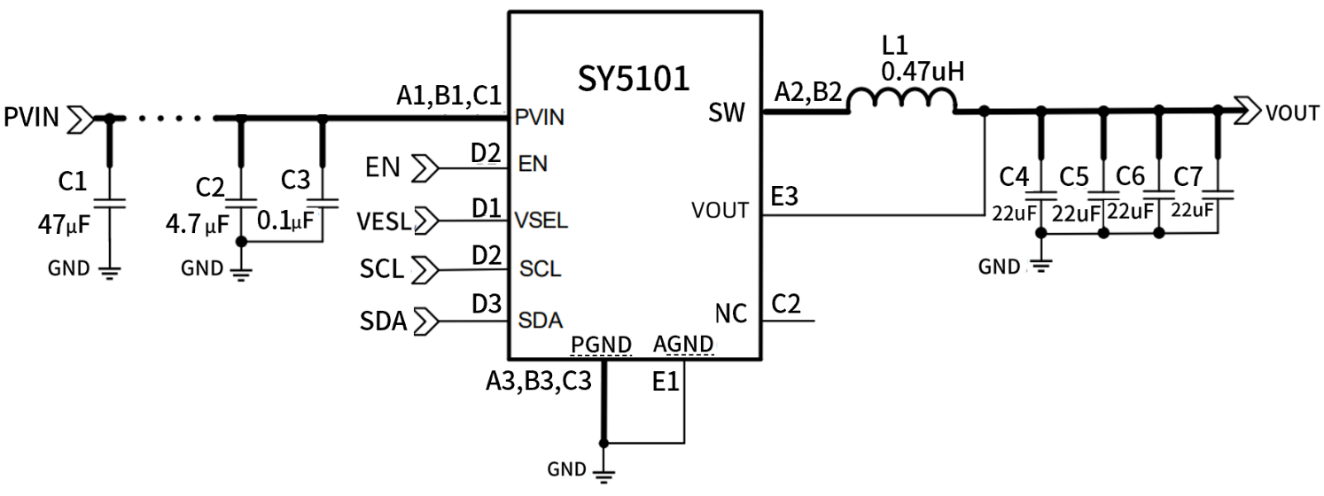 SY5101是一款支持I2C编辑动态调整输出电压的BUCK转化芯片。输入电压范围2.9V~5.5V,输出电压范围0.3V~1.394V,I2C可编译7bit DAC,步长6.25mV,动态调整输出电压,支持调整电压变化速率。