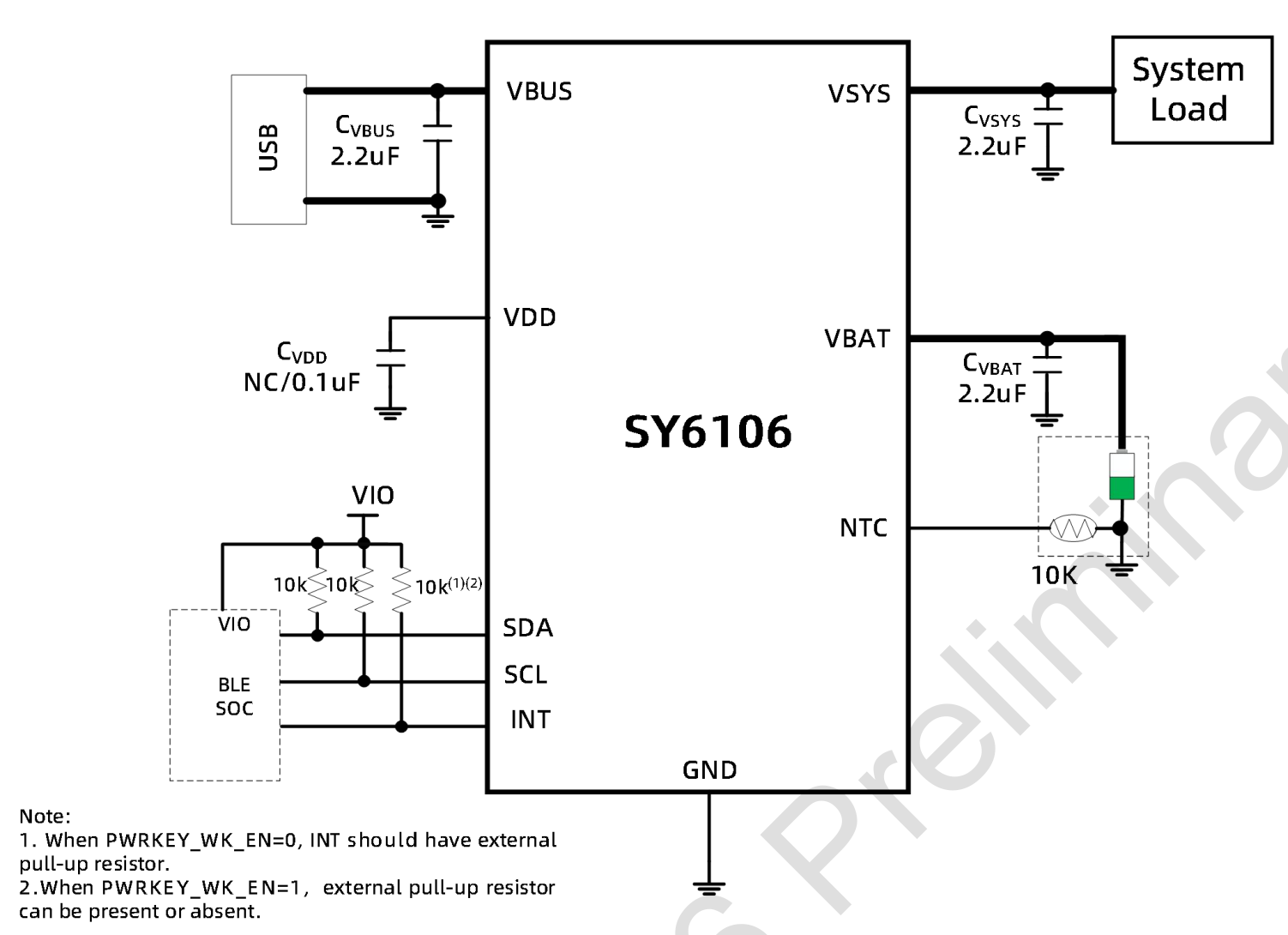 The SY6106 can automatically complete charger phase include pre-charge, fast charge, charge termination. Also monitor battery temperature during charging. Power path management will provide higher priority system load even with depleted battery.