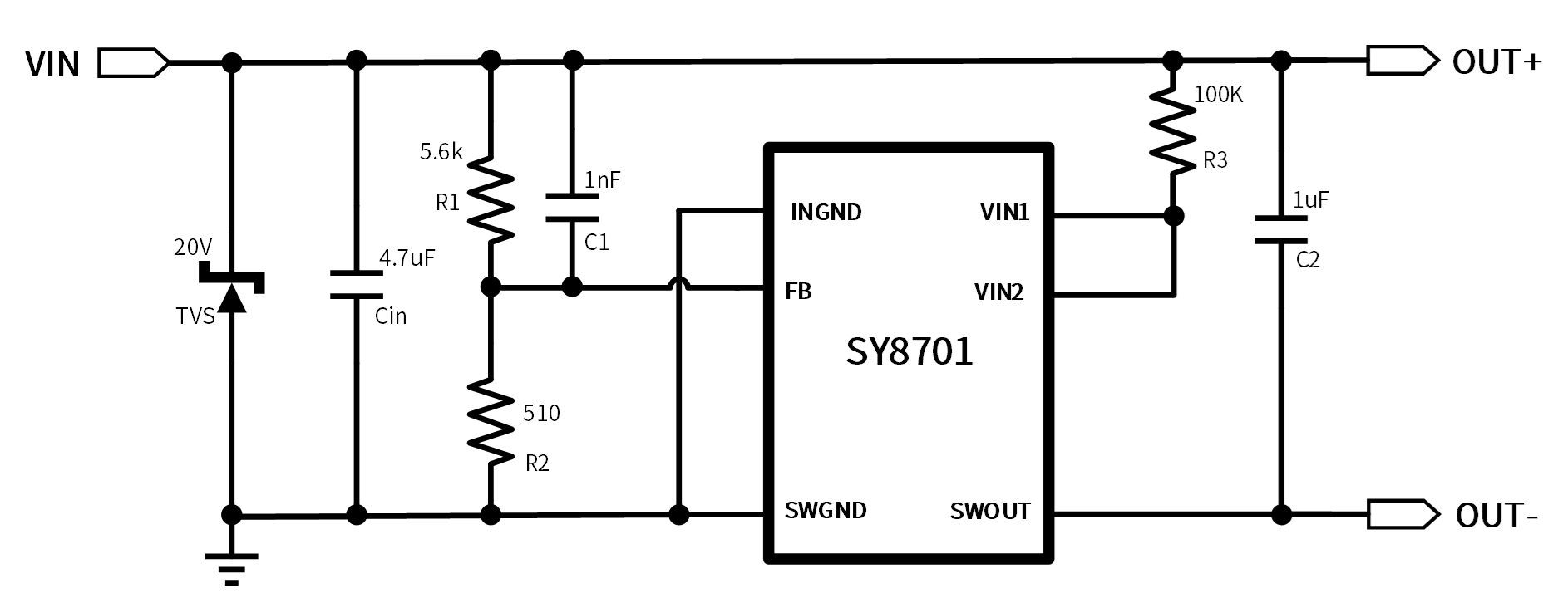 SY8701 along with small SOT23-6 footprint provides small PCB area application.