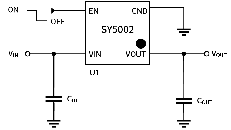 SY5002 has an automatic discharge function to quickly discharge VOUT when EN is disabled.